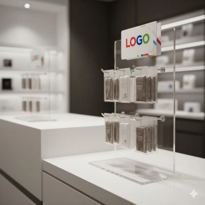 Ela é amplamente utilizada para suportar wobblers, faixas, placas leves e diversos recursos de merchandising, permitindo que a comunicação visual seja aplicada de maneira eficaz e atrativa no PDV.
